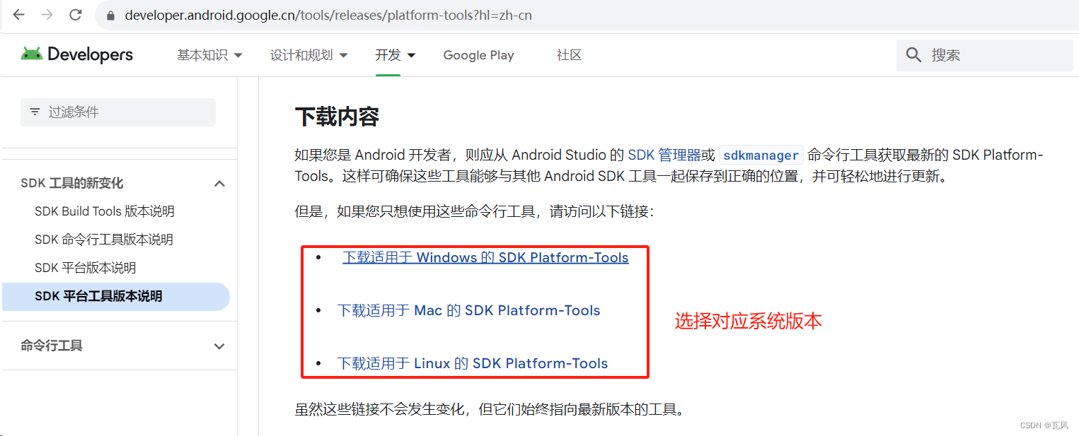 1、打开下载地址:SDK 平台工具