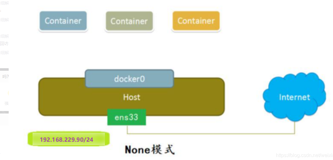 使用none模式,Docker 容器拥有自己的Network Namespace, 但是,并不为Docker容器进行任何网络配置。