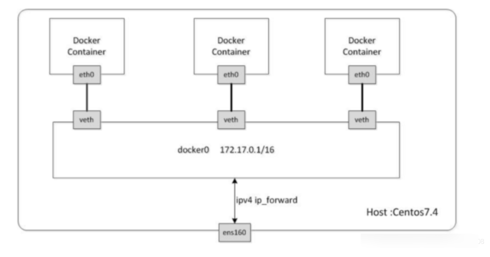 Docker网桥是宿主机虚拟出来的,并不是真实存在的网络设备,外部网络是无法寻址到的,这也意味着外部网络无法直接通过 Container-IP 访问到容器。