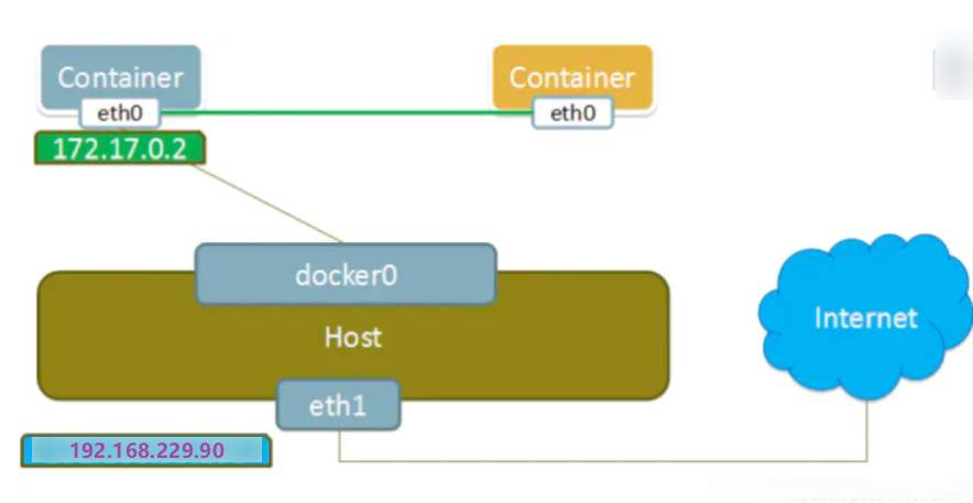 (1) 当Docker进程启动时,会在主机上创建一个名为docker0的虚拟网桥,此主机上启动的Docker容器会连接到这个虚拟网桥上。虚拟网桥的工作方式和物理