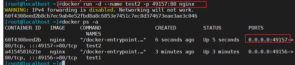 docker run -d --name test2 -p 49157:80 nginx