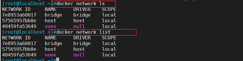 当你安装Docker时,它会自动创建三个网络bridge(创建容器默认连接到此网络)、 none 、host。你可以使用以下docker network ls或者docker network list命令列出这些网络: