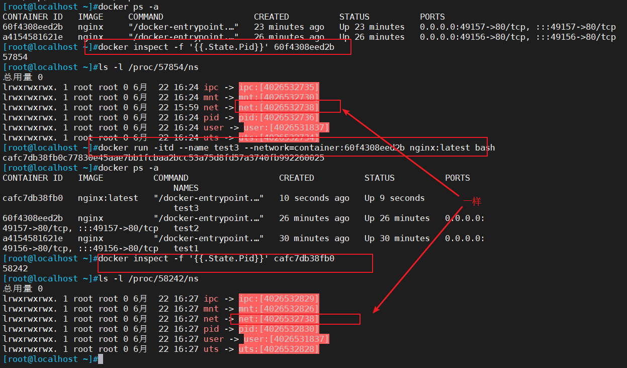 container模式:使用--net=container:NAME_