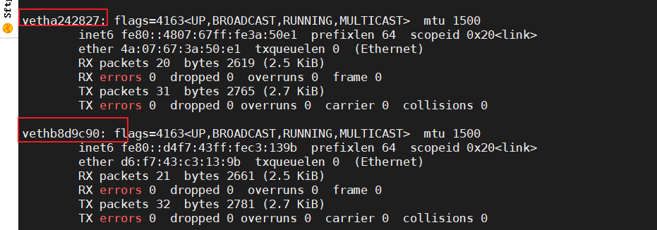 (2) 从docker0子网中分配一-个IP给容器使用,并设置docker0的IP地址为容器的默认网关。在主机上创建—对虚拟网卡veth pair设备。veth设备总是成对出现的,它们组成了一个数据的通道,数据从一个设备进入,就会从另一个设备出来。因此,veth设备常用来连接两个网络设备。