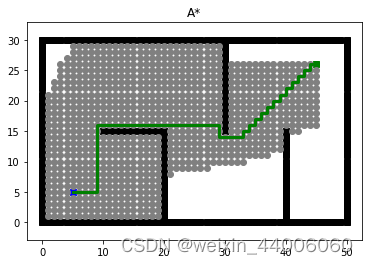 - star_m.animation(path, visited, "A*") # animation