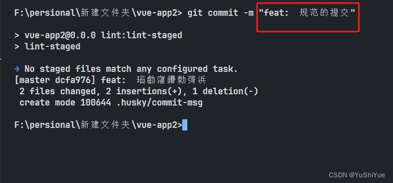 上面配置好了husky以及lint-staged之后,我们想要再提交commit的时间符合一定的标准如
