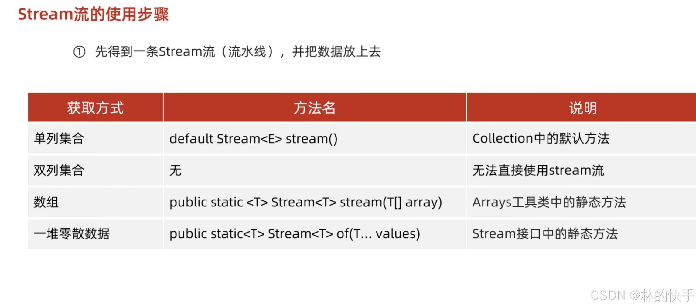 - 一堆零散数据 public static<T> Stream<T> of(T... values) Stream接口中的静态方法