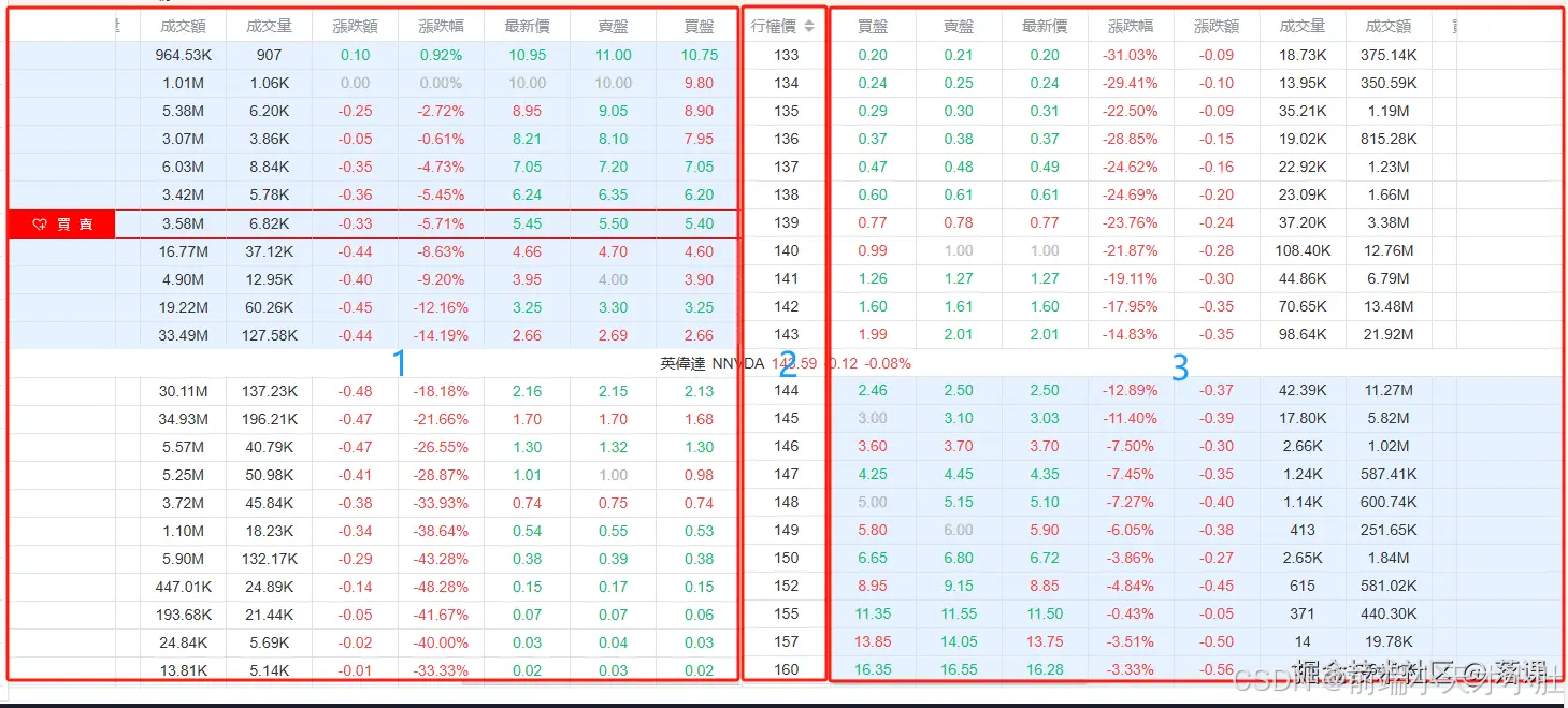 如下图,左中右分别都是一个表格组件,为什么要这个写,细心的盆友可以看到1和3的表格是可以左右滚动的,从盒模型的角度来看,就不可能写在同一个元素中了,而且以我现在的工作经验来看,滚动好像只能使用原生的,顶多改变一下样式。至于2的话,应该是可以不用这个表格组件也能写的,但是我为了方便就如许写了,使用组件的话很多样式就可以cv了。