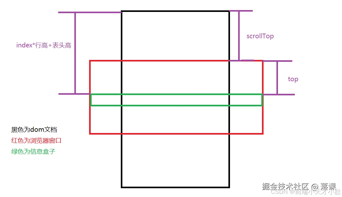 复制代码 拿到这个下标索引之后,就是一些把他的计算公式写出来,我当时搁那拿本子画了很久哈哈哈,要找到表格滚动高度scrollTop和top的一个关系。