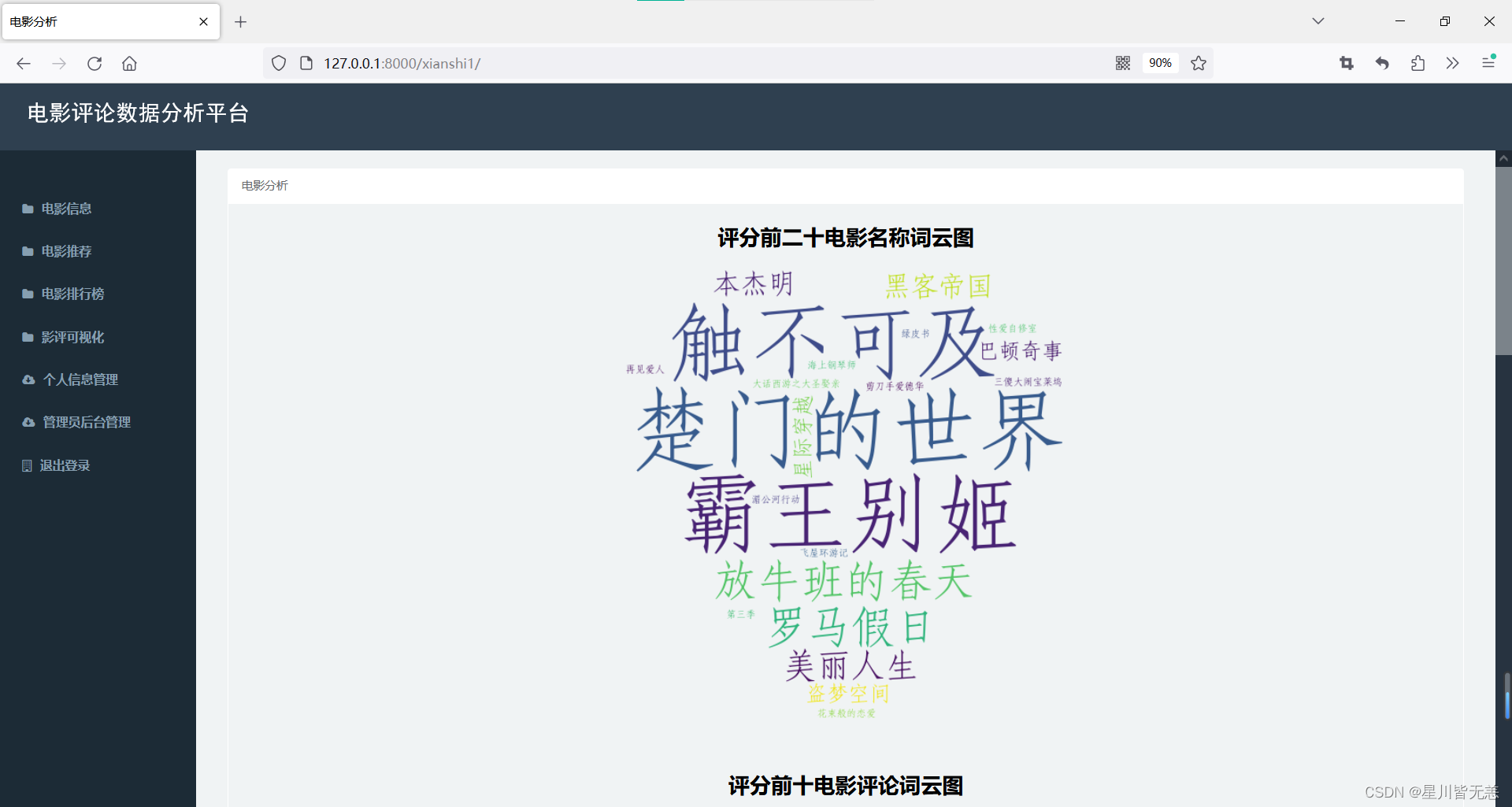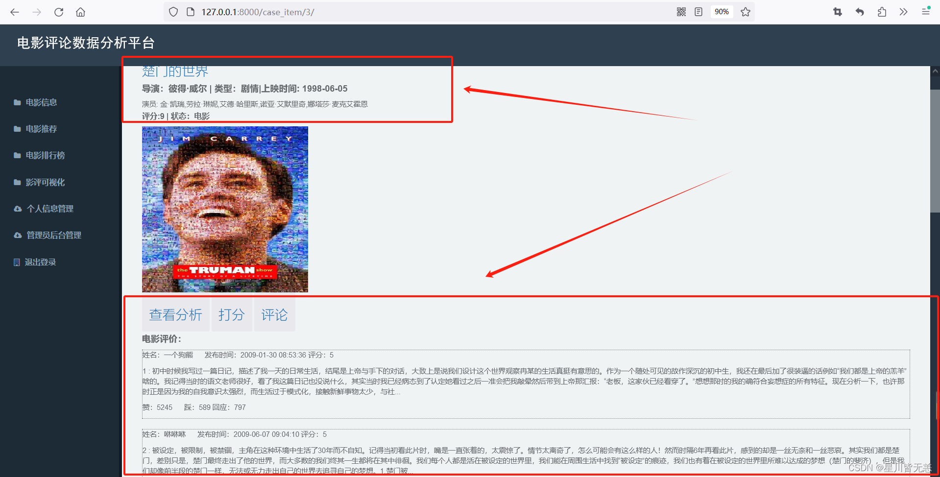1.深入挖掘电影批评数据: 通过构建基于Python/Django的豆瓣电影批评可视化分析推荐系统,旨在深入挖掘电影批评数据中蕴含的用户偏好、口碑评价等信息。通过对批评数据的系统性分析,揭示用户对电影的喜好和趋势。
