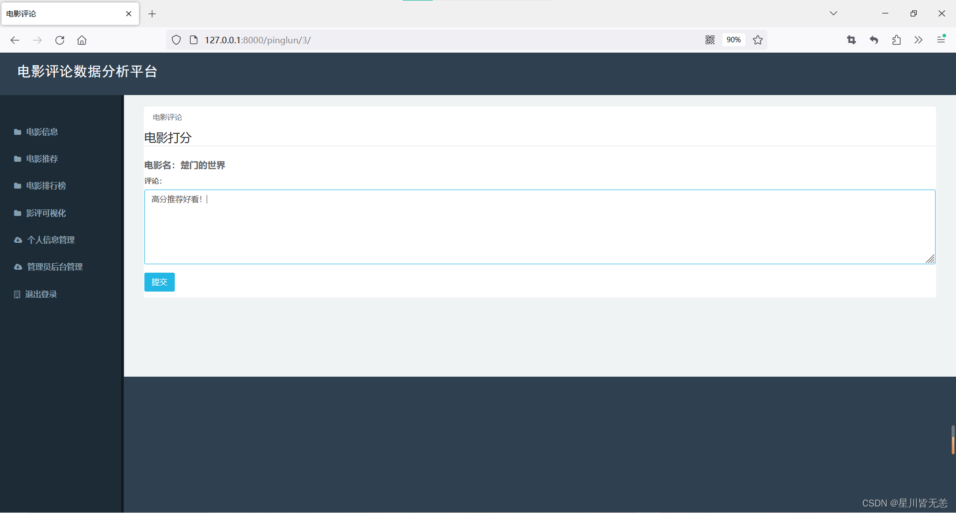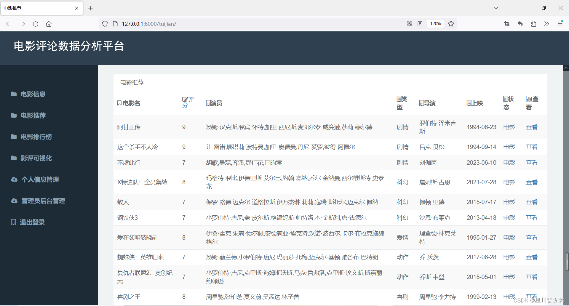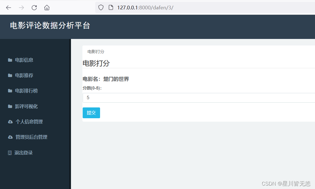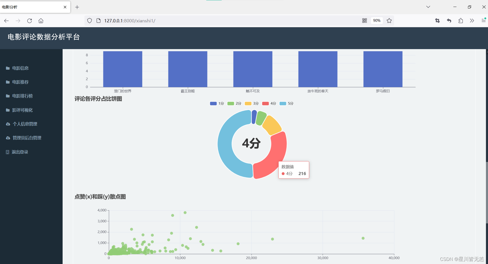 4.计划智能化的电影推荐算法: 基于对电影批评数据的深度分析,计划智能化的推荐算法。通过思量用户的汗青喜好、观影风俗等因素,为用户提供个性化、精准的电影推荐服务,提升用户体验。