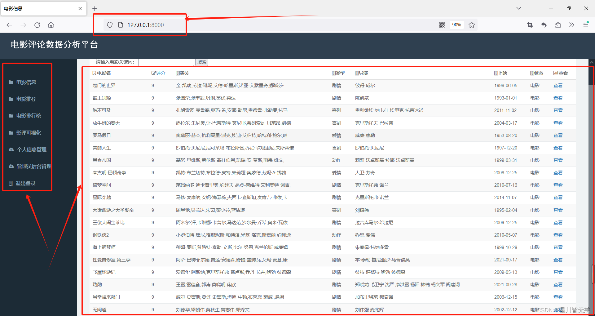 2.构建全面的电影信息数据库: 通过爬取豆瓣电影批评数据,进行数据清洗和处置惩罚,构建一个全面而准确的电影信息数据库。该数据库将包罗丰富的电影元数据,为系统提供充足的信息基础,支持后续的分析和推荐。