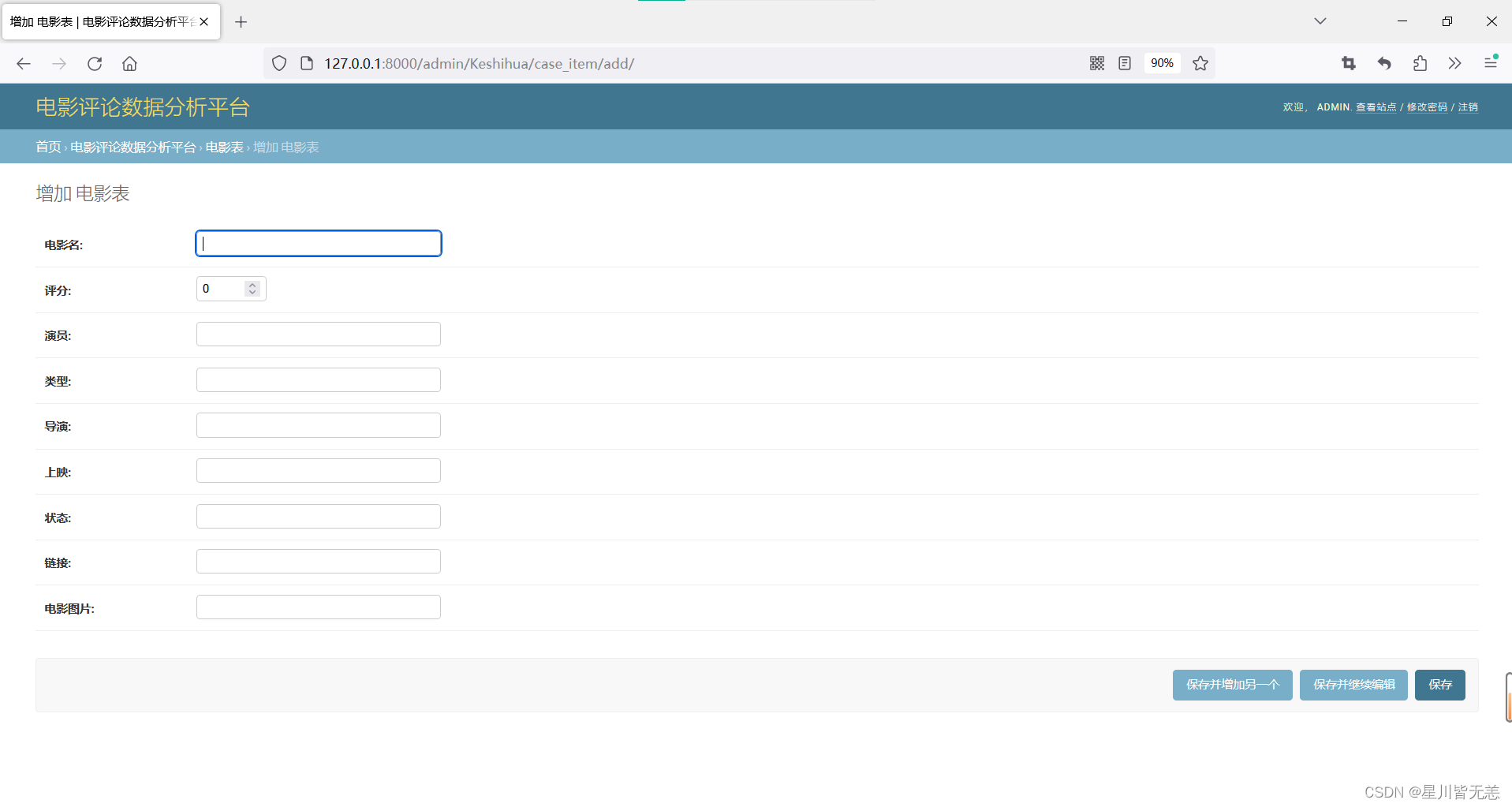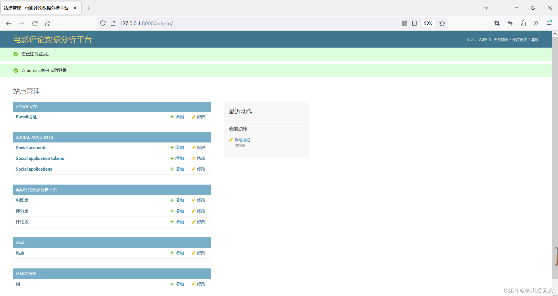 - 自动化 Admin 界面: