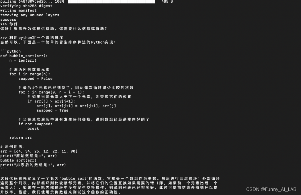安装成功,测试使用,使用qwen2-7B写一个冒泡排序,速率感人