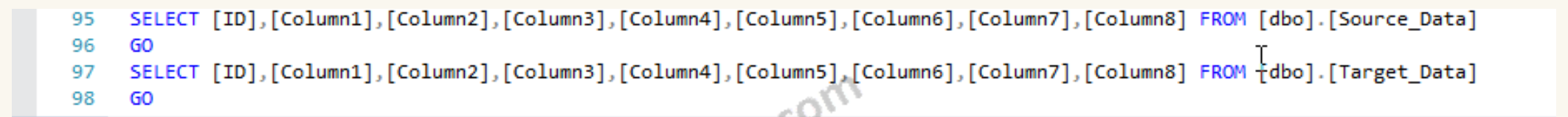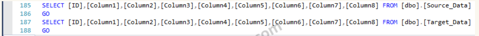15. INSERT INTO [dbo].[Target_Data]([ID],[Column1],[Column2],[Column3],[Column4],[Column5],[Column6],[Column7],[Column8])