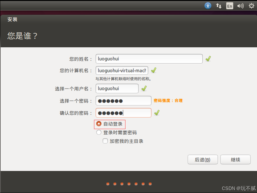 第二栏计算机名默认输入ubun (较短的计算机名在