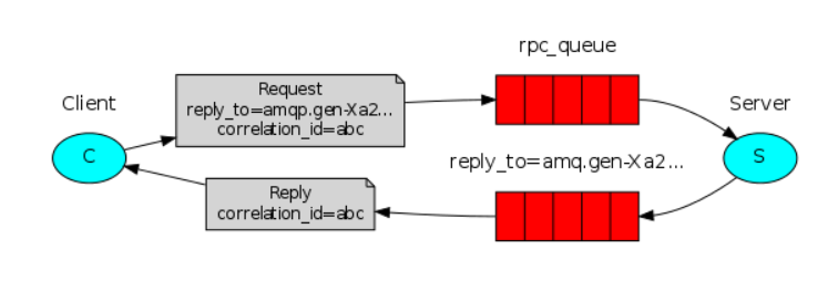 - 客户端发送消息到一个指定的队列,并在消息属性中设置 replyTo 字段,这个字段制定了一个回调队列,服务端处理之后,会把相应结果发送到这个队列