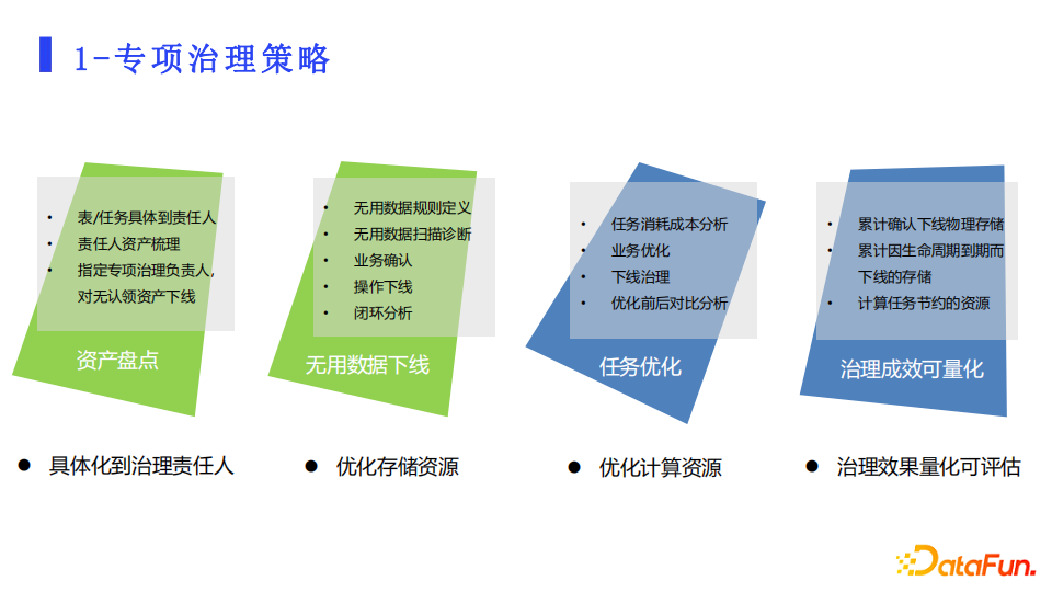 第四,量化治理成效。存储、计算治理累计的效果、单次的效果,需要变成一种量化指标。让治理的成果一目了然。