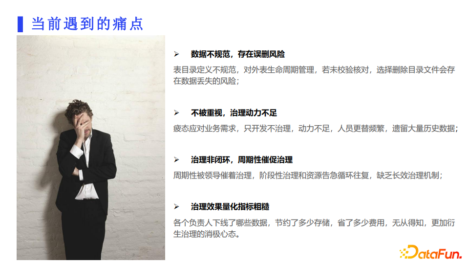 这部分主要介绍当前治理的痛点,以及我们在制定落地策略的时候,会遇到的各种各样的“坑”。