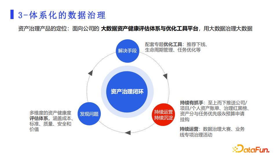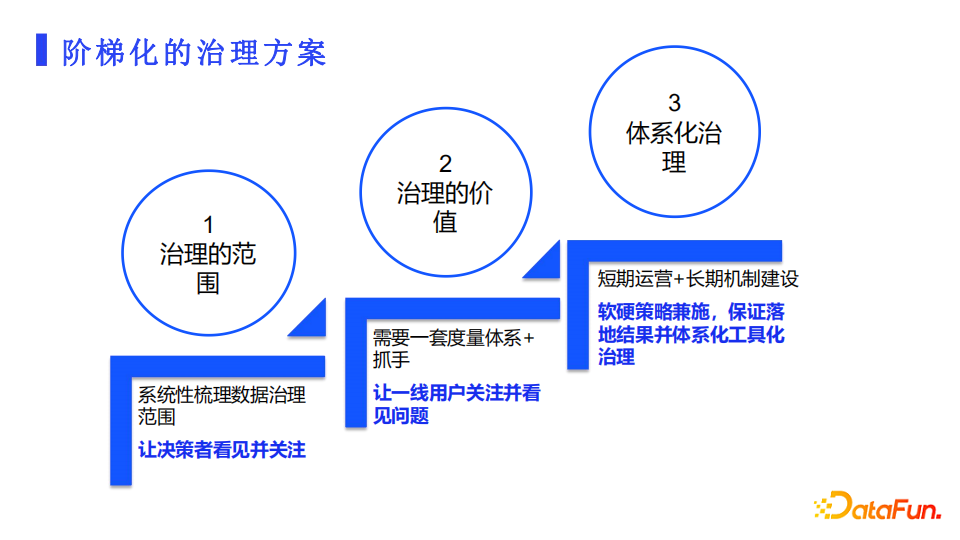 第三就是体系化治理,把短期运营治理的方法策略工具化产品化,在流程上形成长期建设机制,形成一个良性的闭环,提升治理的效率和数据质量。让所有人都从中受益看到效果。