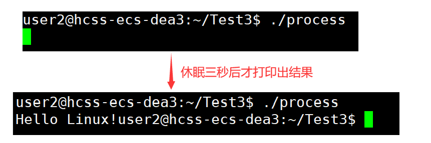 解释:当printf函数实行完后,其内容并没有打印到显示器上,而是在缓冲区内里(没有碰到换行符(\n)或者缓冲区满)。然后实行完sleep函数后,步伐竣事会自动革新缓冲区,最后才打印出内容“Hello Linux!”。