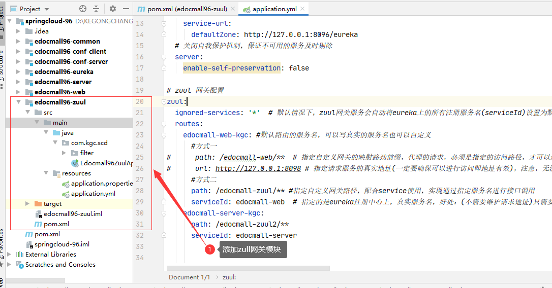 - path: /edocmall-zuul/** #指定自定义网关路径,配合service使用,实现通过指定服务名进行接口调用