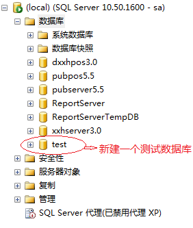 第一步、首先我们打开SQL Server数据库,新建一个项目的测试数据库,然后退出SQL Server 2008。: