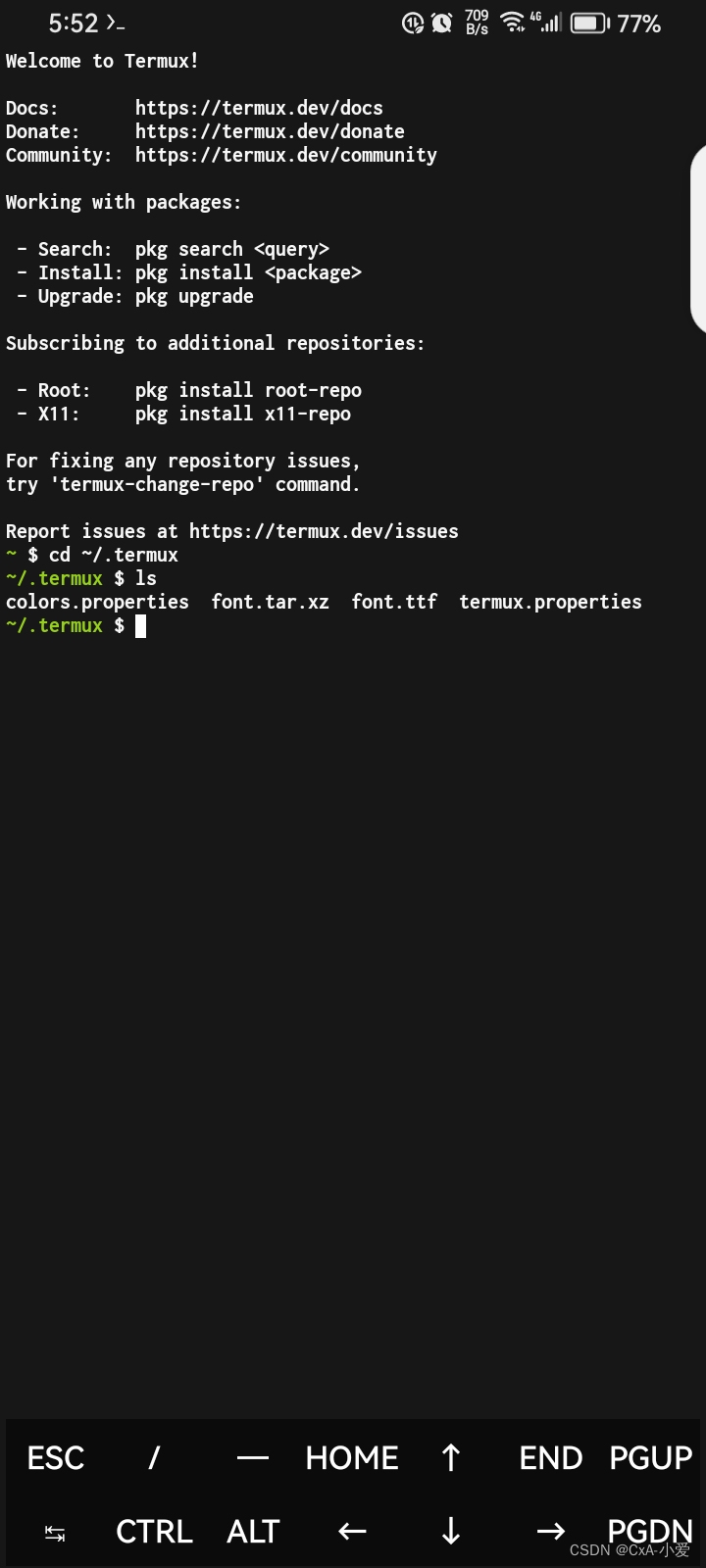 termux内里有个名为termux.properties的配置文件他可以自界说termux的外观和功能键,这个文件在~/.termux下