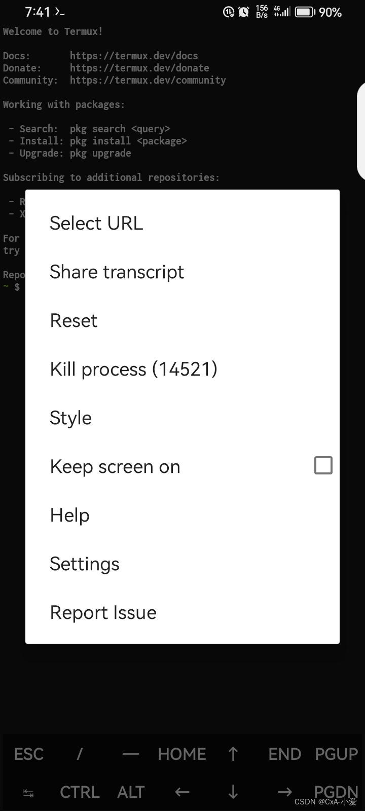 长按终端界面会有more选项,内里可以对termux有更多的利用,常用的例如杀进程,设置等