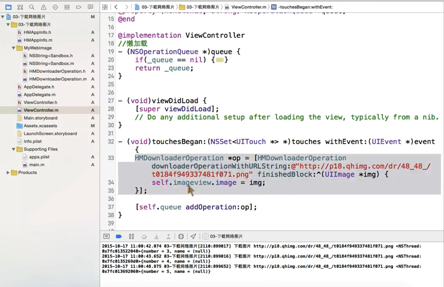 【多线程-第四天-自己模拟SDWebImage的下载图片功能-下载操纵缓存池 Objective-C语言】