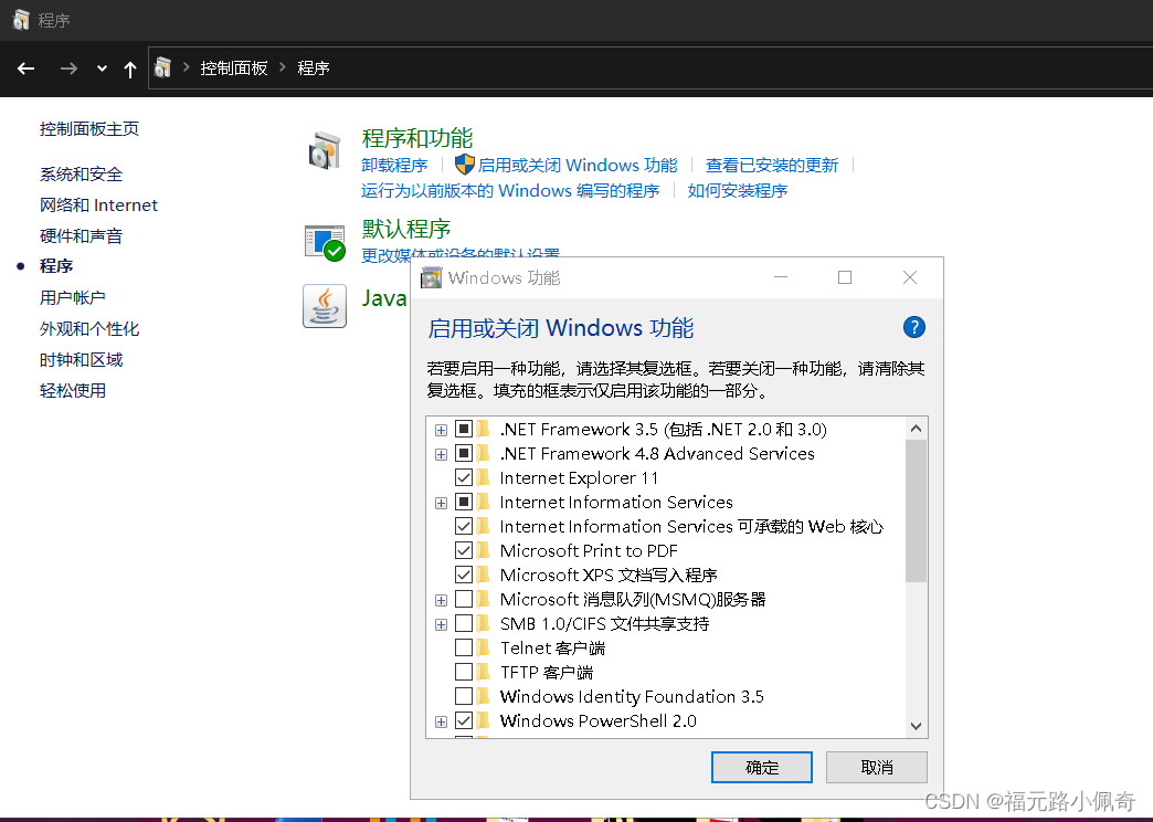 <authentication mode="Forms"/> <authentication mode="Forms"/> <authentication mode="Forms"/> <authentication mode="Forms"/>打开控制面板-程序-启用或关闭Windows功能,勾选并确定。 编辑