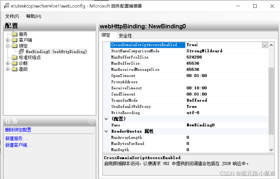 <authentication mode="Forms"/> <authentication mode="Forms"/> <authentication mode="Forms"/> <authentication mode="Forms"/>选择 <authentication mode="Forms"/>webHttpBinding,修改 <authentication mode="Forms"/>配置-Name,将 <authentication mode="Forms"/>常规-CrossDomainScriptAcessEnabled <authentication mode="Forms"/>设为 <authentication mode="Forms"/>True。