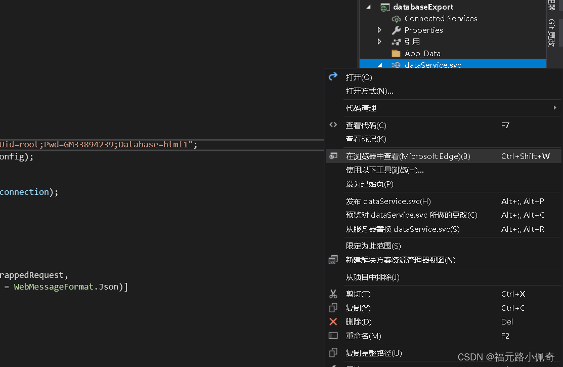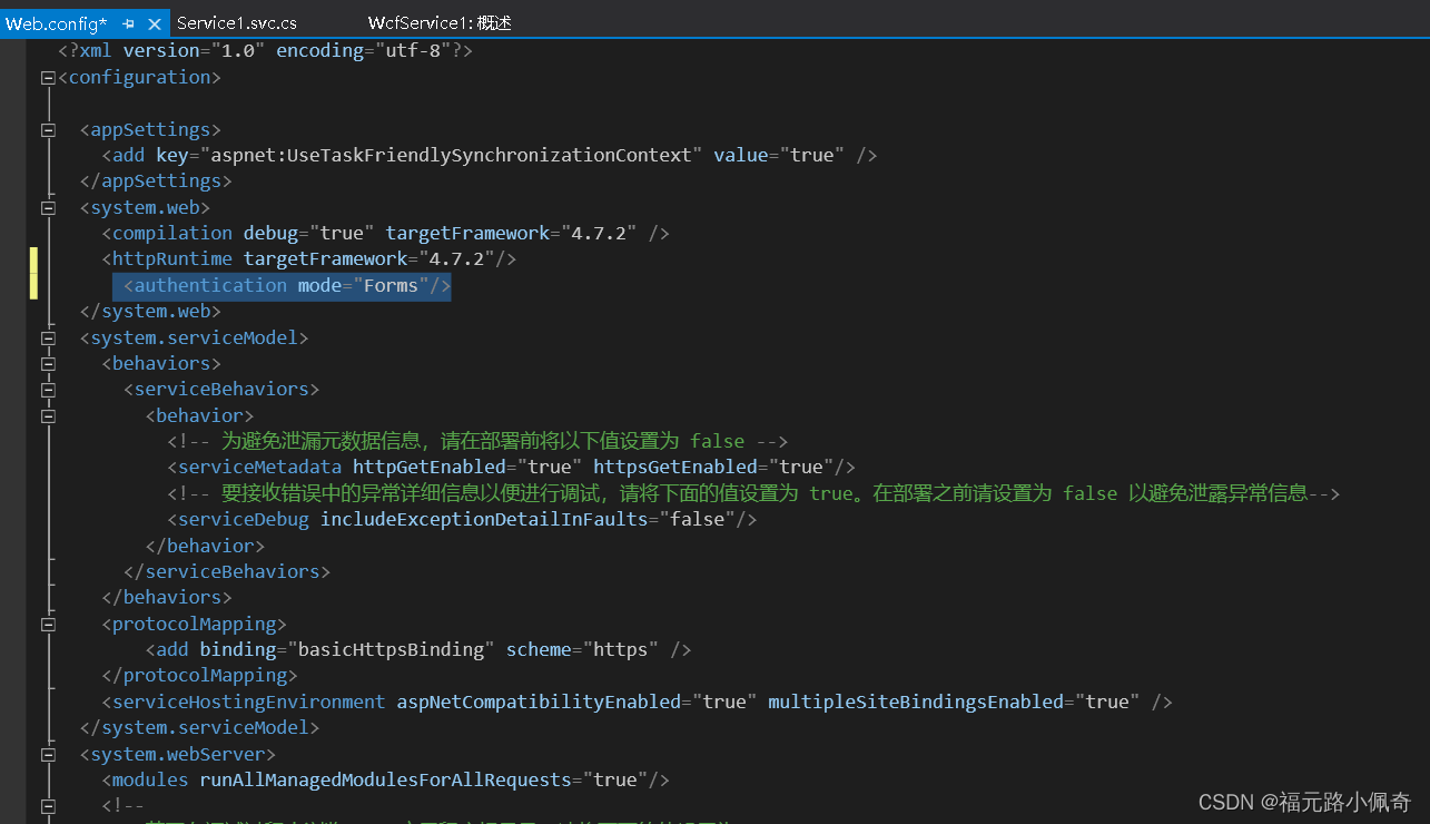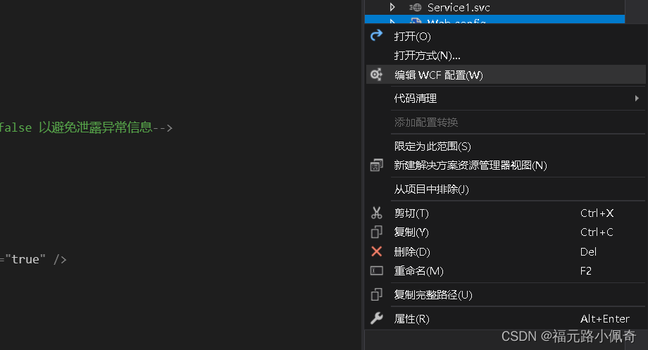 <authentication mode="Forms"/> <authentication mode="Forms"/> <authentication mode="Forms"/> <authentication mode="Forms"/> 右键单击 <authentication mode="Forms"/>Web.config,选择 <authentication mode="Forms"/>编辑WCF配置。