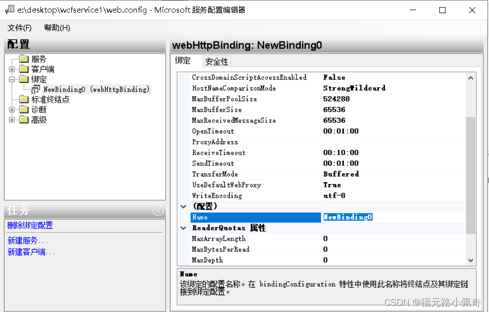 编辑 <authentication mode="Forms"/> <authentication mode="Forms"/> <authentication mode="Forms"/> <authentication mode="Forms"/> 点击 <authentication mode="Forms"/>服务-终结点,修改Name, <authentication mode="Forms"/>在 <authentication mode="Forms"/>BindingConfiguration处绑定之前的“绑定”。