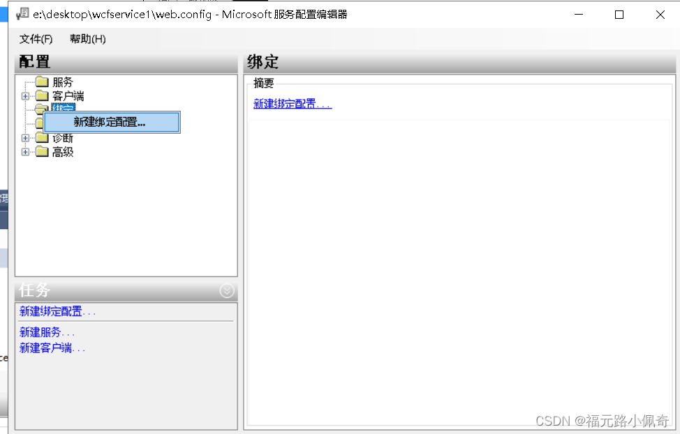 <authentication mode="Forms"/> <authentication mode="Forms"/> <authentication mode="Forms"/> <authentication mode="Forms"/> 右键单击 <authentication mode="Forms"/>绑定,新建绑定配置。