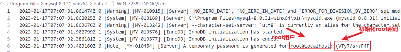 初始化完成后,里面生成一个.err的文件,里面含有登录mysql的密码,