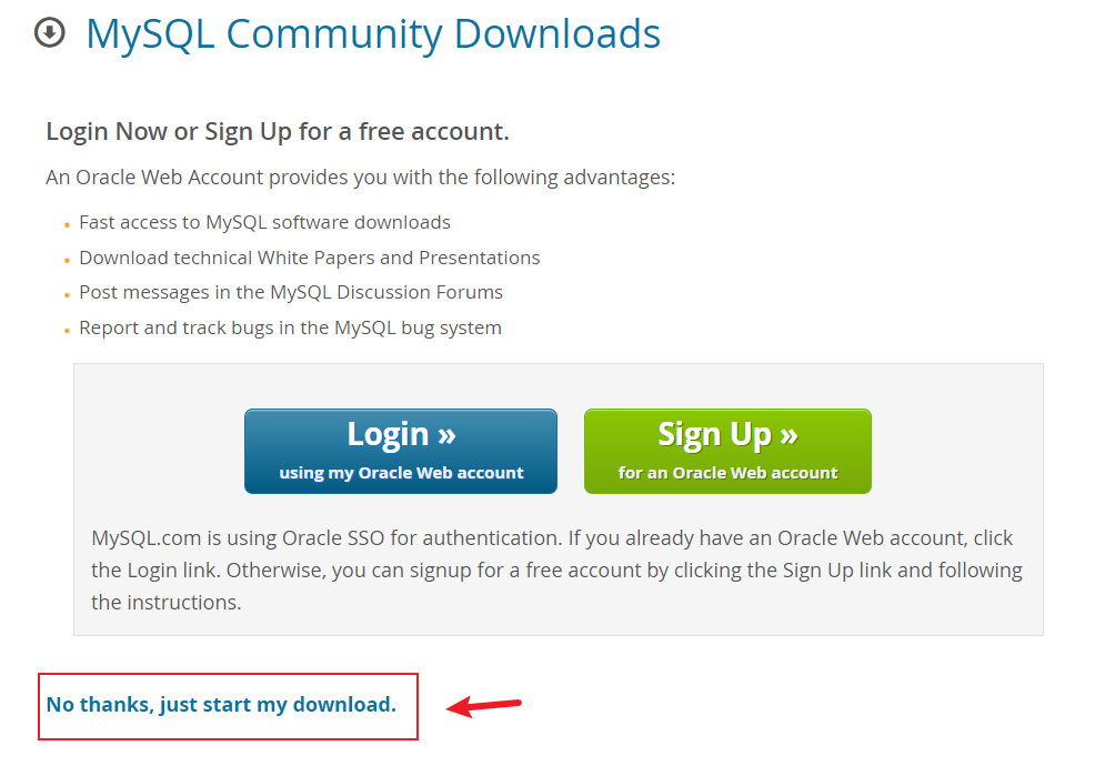 这里在选择Download下载后,跳转的页面会询问你是否登录,这里不用等录,直接点击No thanks,just start my download