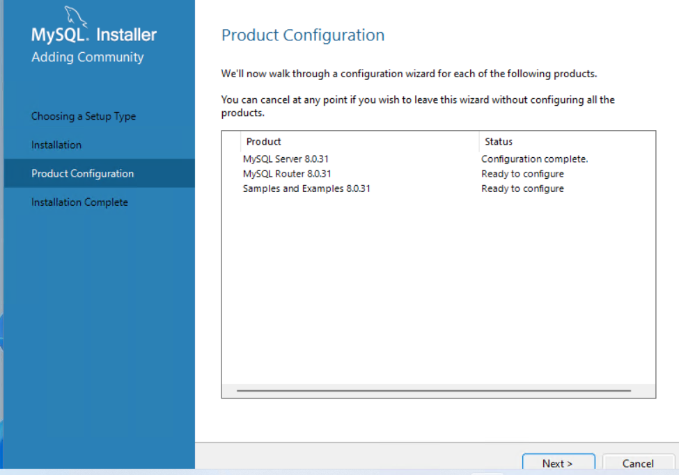 - 这里的这些不需再继续配置,点击Cancel,到此MySQL安装完成。