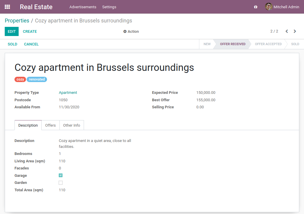 第二个tab页,列出了房产的报价。我们可以在这里看到,潜在买家可以提供高于或低于预期售价的报价,取决于卖方是否接受报价。