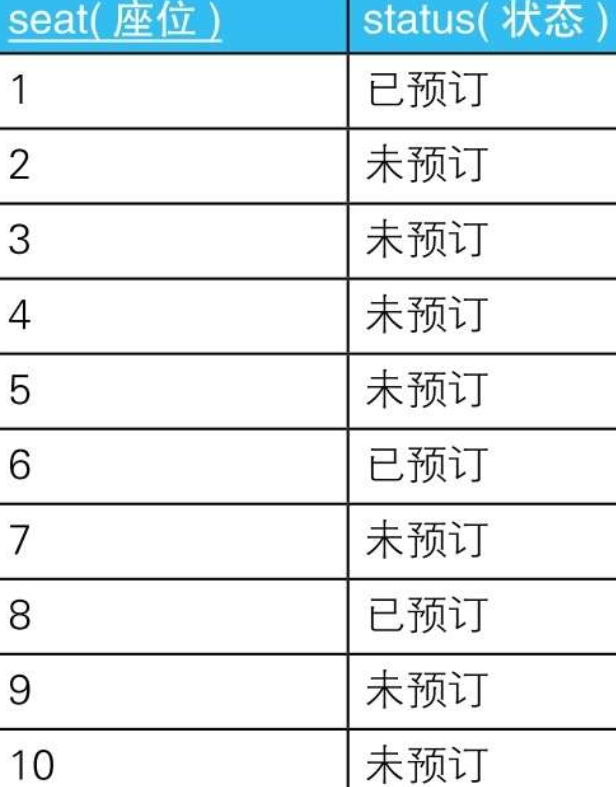 - OR (S3.seat = S2.seat + 1 AND S3.status =’未预订’)