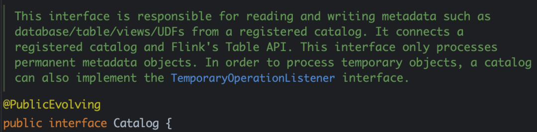 Catalog 提供了一个统一的 API 来管理元数据,并使其可以从表 API 和 SQL 查询语句中来访问。