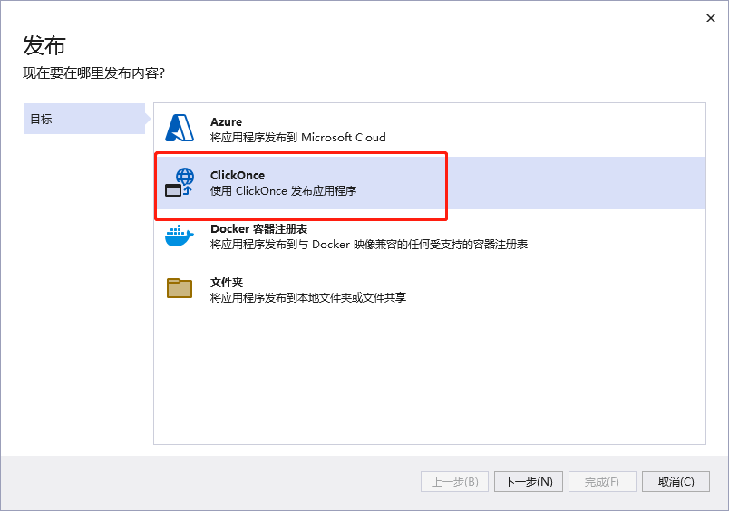 ,选择ClickOnce ,下一步。