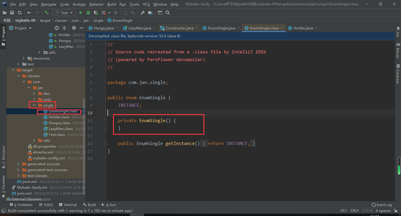 - EnumSingle instance1= EnumSingle.INSTANCE; //有一个无参构造,试一试,看看是不是真的