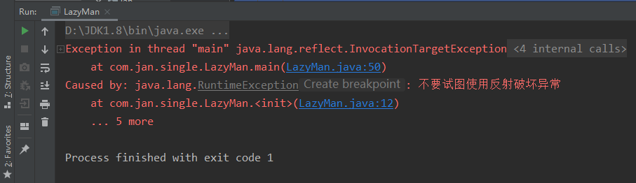 - throw new RuntimeException("不要试图使用反射破坏异常");