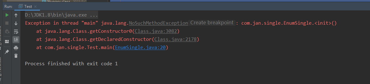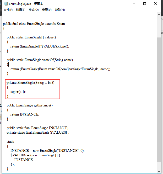 修改代码,这里只展示不同的- Constructor<EnumSingle> declaredConstructor = EnumSingle.class.getDeclaredConstructor(String.class,int.class);