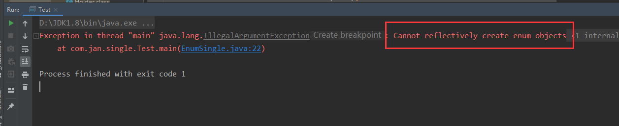 复制代码 结果:这个反射的确不能破坏枚举的单例