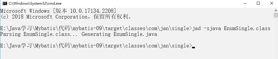 在IDEA的targer中找到 EnumSingle.class,打开文件的文件的位置,再从文件的卫视输入 cmd