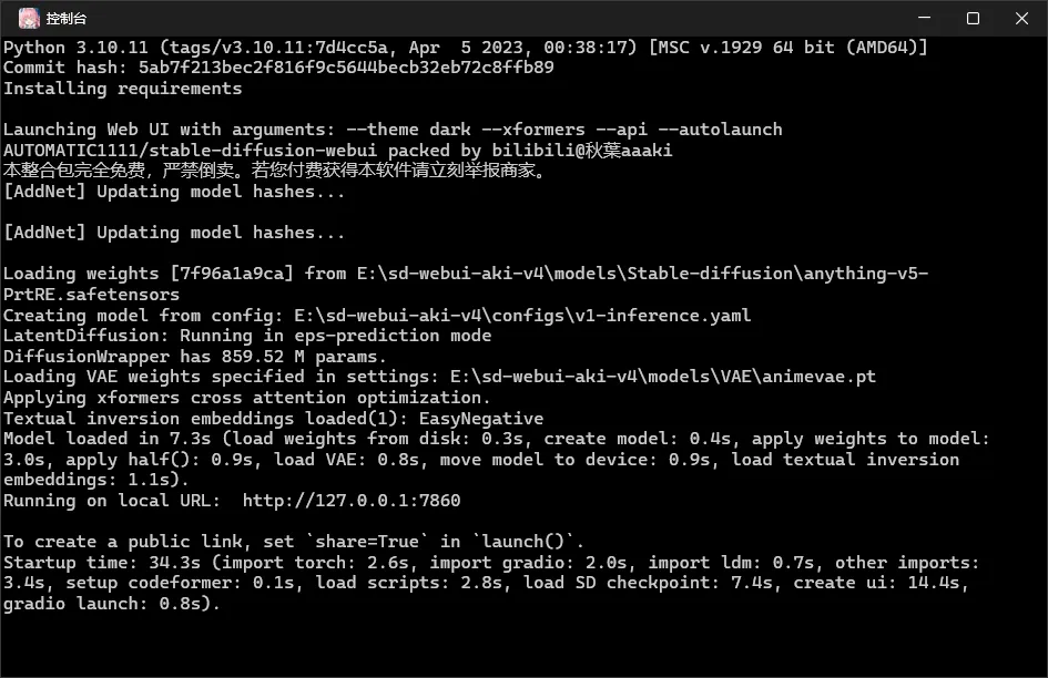 打开启动器,一键启动即可,留意随启动器一起打开的下令窗口,等候一会表现http://127.0.0.1:7860就乐成启动了,若启动时有什么报错信息都可以在这个窗口看到,可以实验用启动器的修复功能先修复看看,如果不可先百度下看看,着实办理不了可以进秋葉大佬的QQ频道咨询一下。