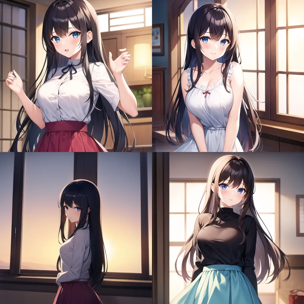 正向提示词我们就用:1girl, long hair, long skirt, indoors, morning, upper body, best
