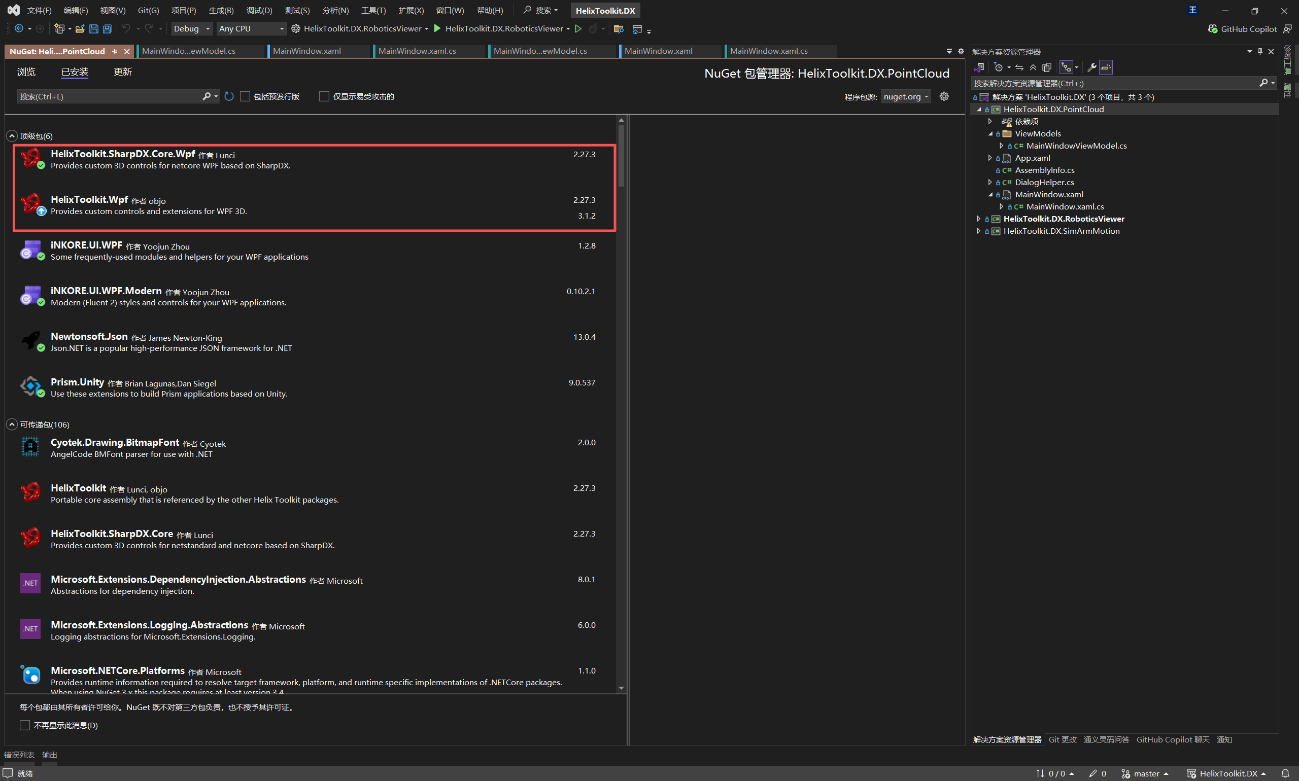 NuGet 依赖:安装 HelixToolkit.Wpf 和HelixToolkit.SharpDX.Core.Wpf